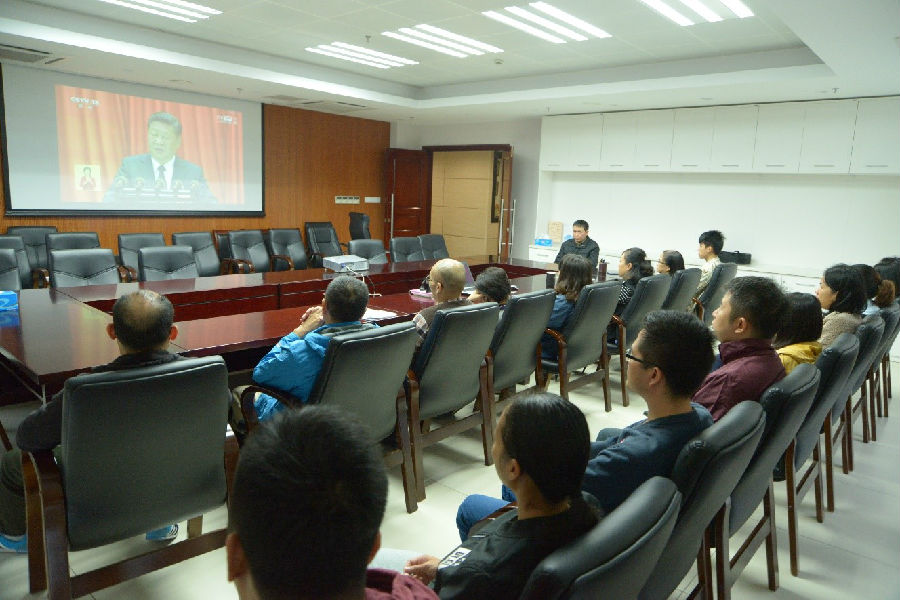 會(huì)議上,全體黨員職工佩戴黨徽,認(rèn)真聆聽習(xí)近平總書記作的重要講話。這次大會(huì)的主題是:不忘初心,牢記使命,高舉中國特色社會(huì)主義偉大旗幟,決勝全面建成小康社會(huì),奪取新時(shí)代中國特色社會(huì)主義偉大勝利,為實(shí)現(xiàn)中華民族偉大復(fù)興的中國夢不懈奮斗。黨的十九大是在全面建成小康社會(huì)關(guān)鍵階段、中國特色社會(huì)主義發(fā)展關(guān)鍵時(shí)期召開的一次重要大會(huì),對鼓舞和動(dòng)員全黨全國各族人民繼續(xù)推進(jìn)全面建成小康社會(huì)、堅(jiān)持和發(fā)展新時(shí)代中國特色社會(huì)主義具有重大意義。