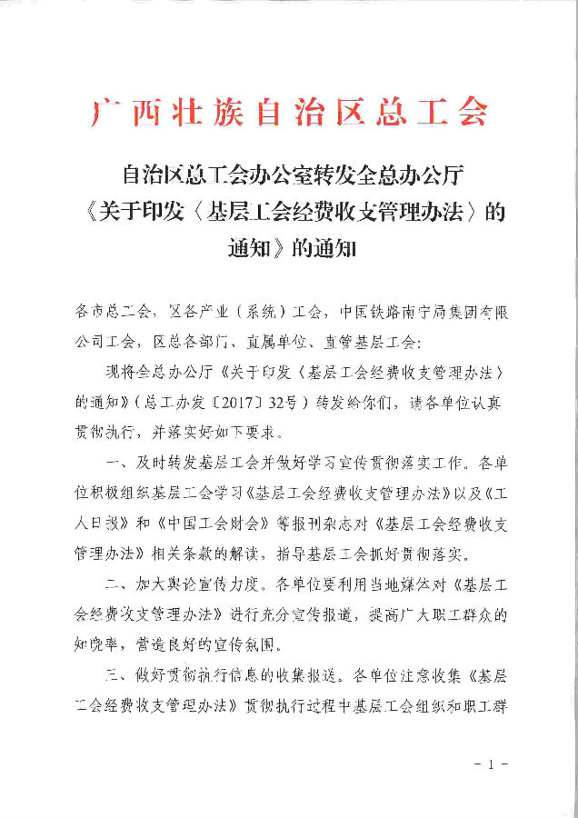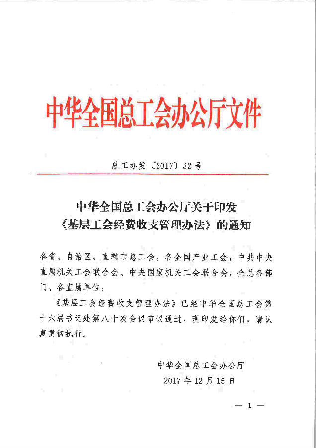 轉(zhuǎn)發(fā)全總辦公廳關(guān)于基層工會經(jīng)費收支管理辦法的通知