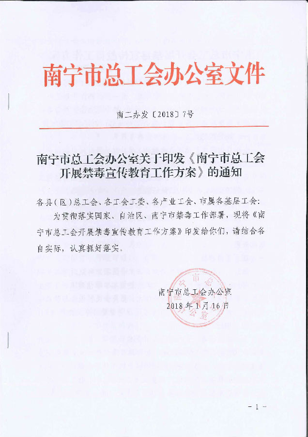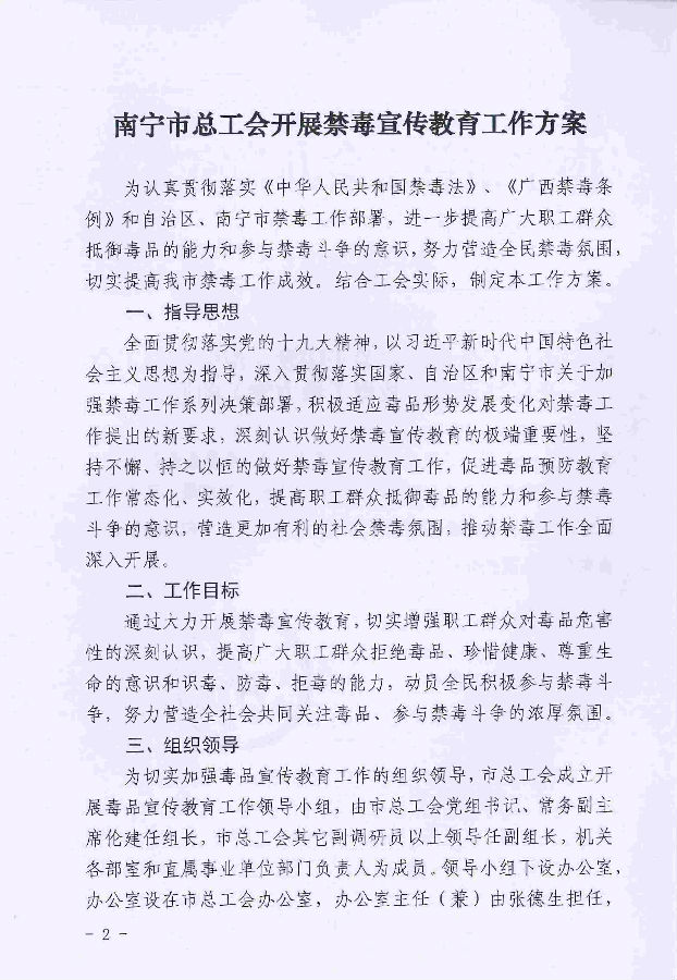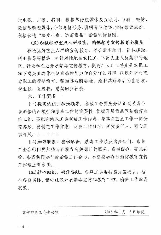 南寧市總工會辦公室關于印發(fā)《南寧市總工會開展禁毒宣傳教育工作方案》的通知