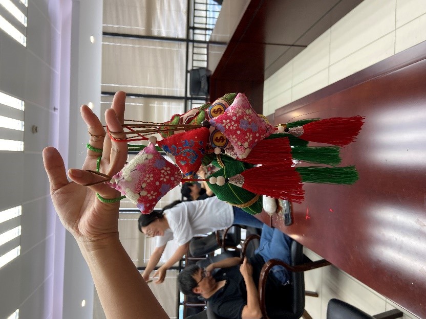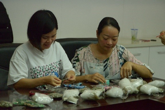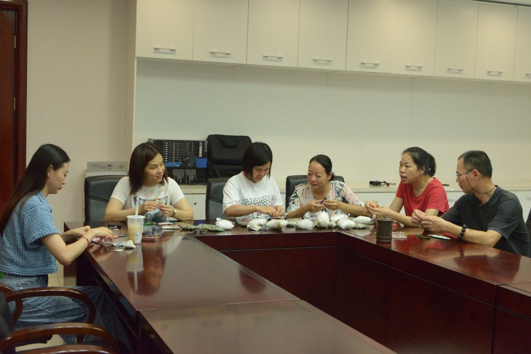 接著大家興致勃勃地開始制作端午節(jié)香囊。黨辦主任陳茵同志早已采購好制作香囊的材料,大家挑選自己喜歡的樣式,認(rèn)真制作起來。