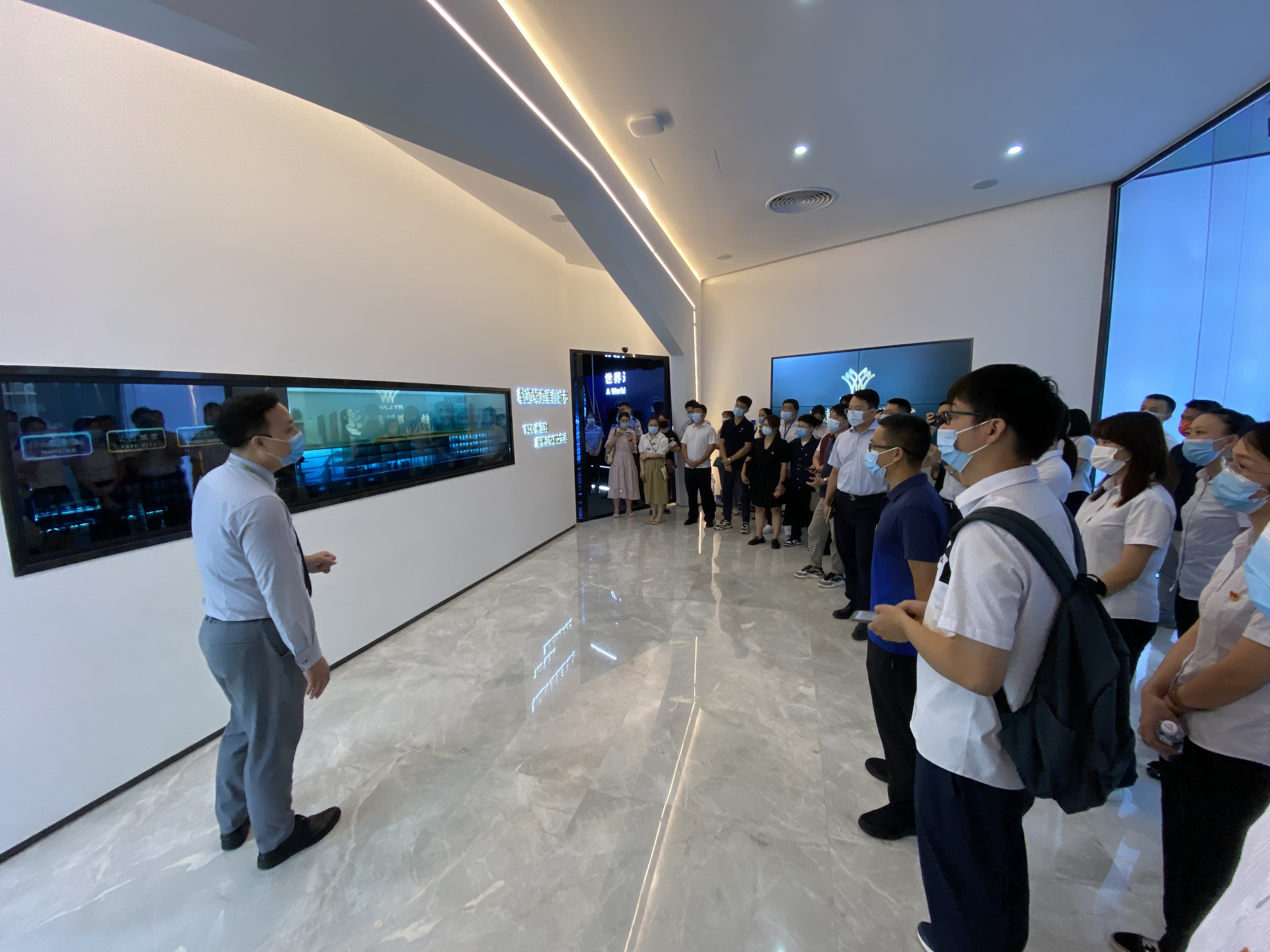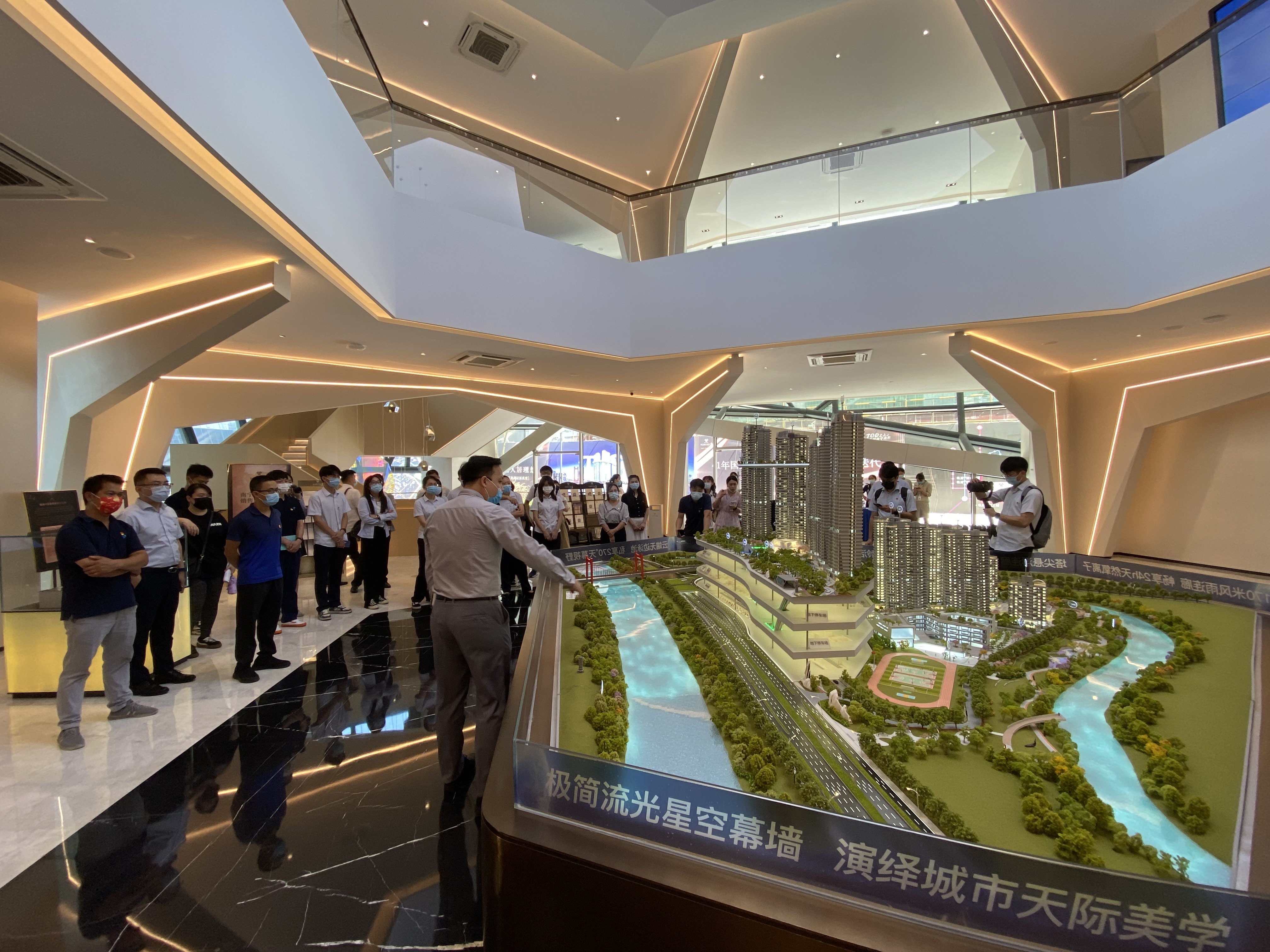 活動中,主持人帶領(lǐng)各單位黨員代表參觀軌道地產(chǎn)TOD展館,介紹南寧軌道交通集團的歷史和成果。